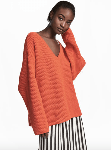 Если грудь нескромного размера – забудьте о глухом и глубоком вырезе, объемных воротниках, выбирайте свитера с V-образной горловиной.
