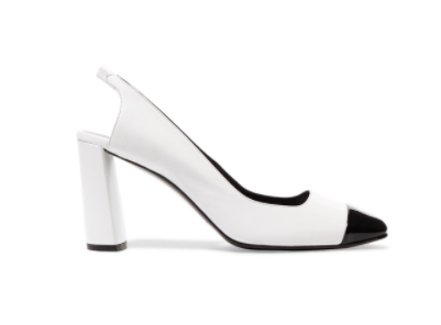 Patent leather-trimmed leather slingback pumps