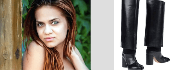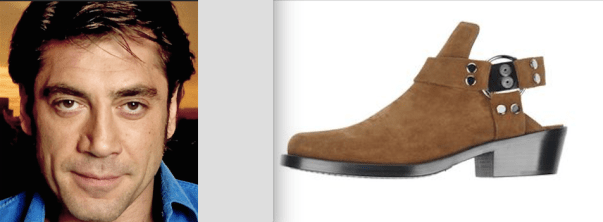 Крупные и прямоугольные формы лица. Ровные прямоугольные брови и такие же ровные плоские губы. Лоск и глянец волос — в гладкой, блестящей подошве. Металлический, холодный взгляд — в металлических деталях обуви.