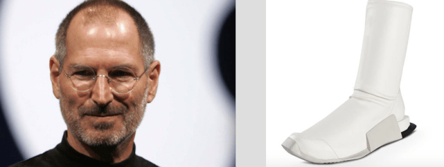 Человек Будущего. Человек Космоса и Вселенского Разума. Есть в его лице что-то от священника. Ультра-современные сникерсы-носки с его заостренным носом, Аскетическая форма. Черная деталь на пятке перекликается с воротом черной водолазки, почти сроднившейся с этим человеком.