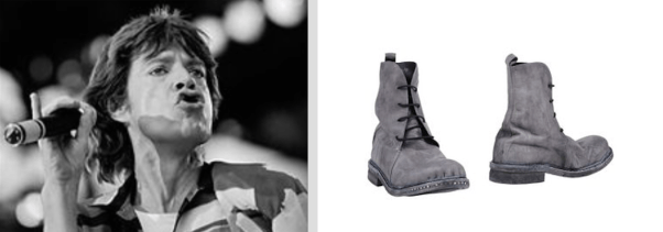 Морщинистая кожа. Крупные губы, нос, подбородок. Взьерошеная прическа. Эти сапоги могут принадлежать только Мику Джаггеру!