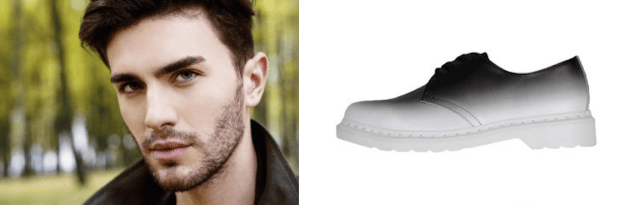Высокая контрастность лица: белый тон кожи и черный волос. Переход между ними — ухоженая щетина. Видите ли вы это в ботинке?