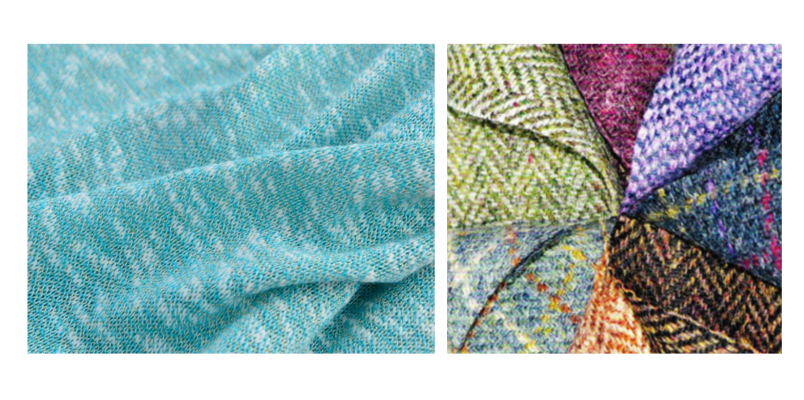 Меланж с вкраплением разных нитей и твид с таким же эффектом.