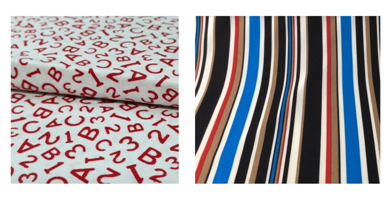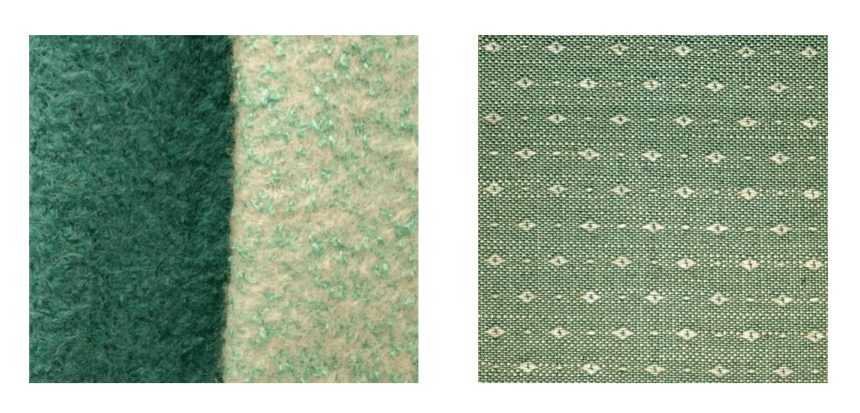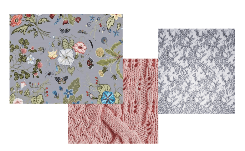 Букле с его объемными и очень мелкими особенностями и принт с мелким и дробным орнаментом.