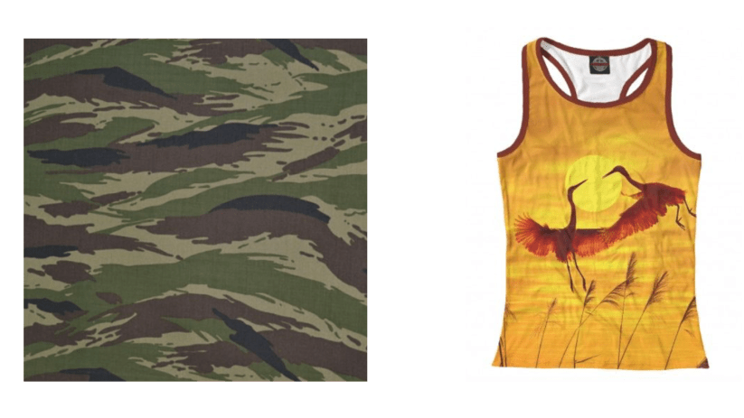 Я выбрала камуфляжный принт, который напоминает камыш, колышущийся на ветру. Переверните его вертикально, и рядом с ним может появится топ с принтом «Журавли».
